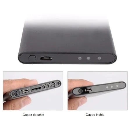 Aceasta Baterie Externa Spion iUni are o mini camera ascunsa care iti ofera posibilitatea sa inregistrezi filmari, sa faci poze si poate fi folosita de asemena si ca stick USB.