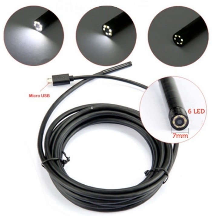 Camera Endoscop rezistenta la apa pentru Android si PC este rezistenta la apa si praf, cu ajutorul acestei camere endoscop puteti obtine imagini la un unghi de 90 de grade datorita oglinzii cu care vine in pachet.Distanta de focalizare a camerei este de 2-6 cm iar intensitatea ledurilor se poate seta cu ajutorul potentiometrului pozitionat pe cablul camerei.