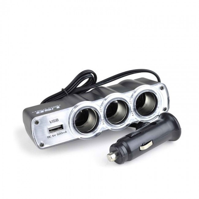 Priza USB încărcător ideal pentru telefon mobil, GPS, PDA, iPodPriză triplă brichetă cu ieşire 12V/24VPanoul frontal cu design modern tip "aluminiu slefuit" acoperit cu plastic transparent.Indicator LED pe panoul frontalSiguranta inclusa.Tensiune / curent USB: DC5V ~ Max 5.4V/500mA.Putere totală de ieşire: 60W (cu excepţia USB)Temperatura: -10 ~ 60 grade CUmiditate relativă: 5 ~ 70 %