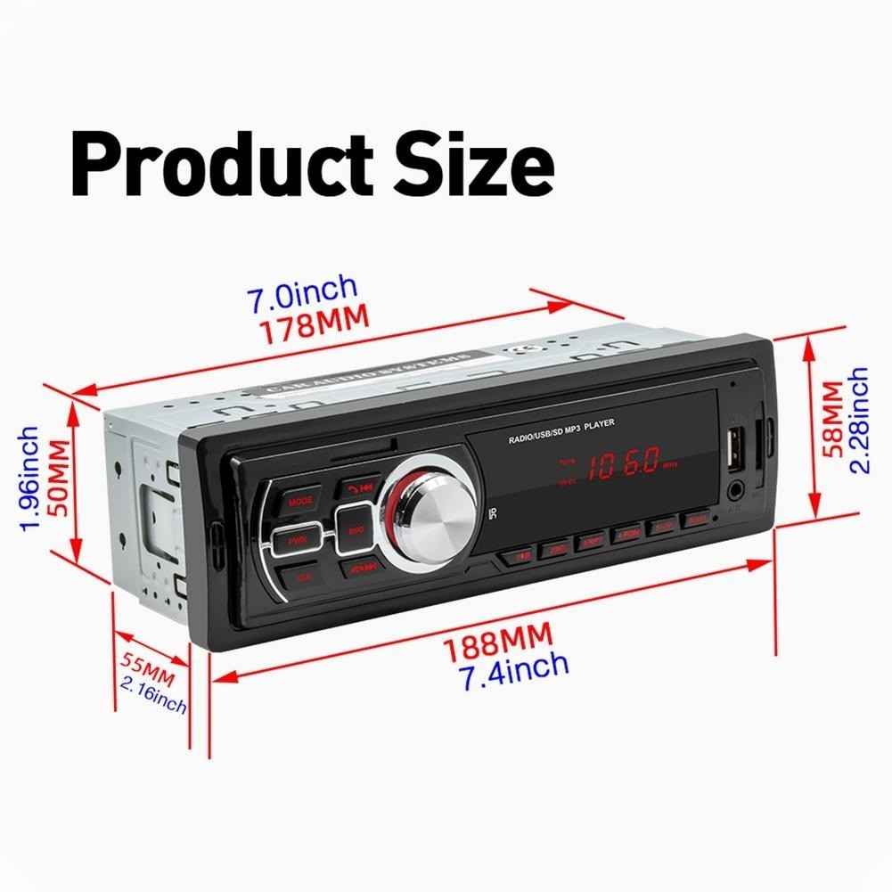 Playerul audio are instalat pe panoul frontal mufele tip USB si AUX si TF-Card, astfel incat este posibila conectarea cu usurinta a dispozitivelor suplimentare. Atasarea unui dispozitiv de stocare cum ar fi un stick de memorie sau un SD Card nu mai reprezinta o problema ci a devenit un lucru la indemana. Radioul accepta formate precum MP3, WAV, WMA, FLAC. Un avantaj important al acestui player auto este si panoul cu afisaj iluminat color.