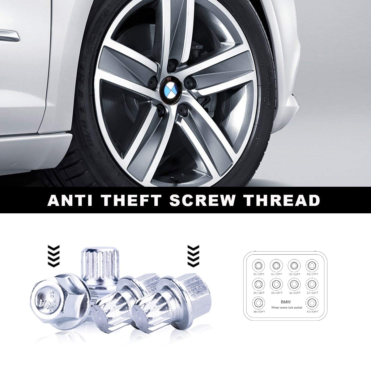Trusa contine 10 chei speciale pentru suruburile antifurt dedicate modelelor de prezoane BMW.