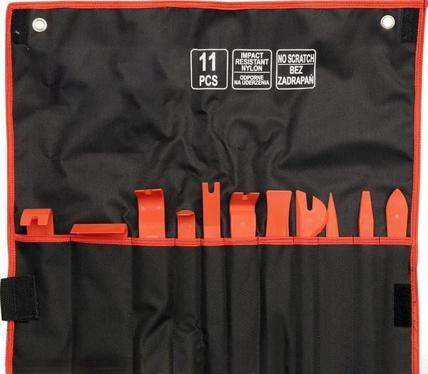 Setul contine 11 leviere extractoare fabricate din plastic dur flexibil de diferite forme si lungimi, usor de utilizat in spatii de lucru diferite: ornamente interioare, fete de usi, ornamente bord, switchuri, cheddere, clips-uri auto, tablou de bord, captusala interioara, garnituri cauciuc, dopuri de inchidere, cleme din plastic, oglinzi retrovizoare etc.