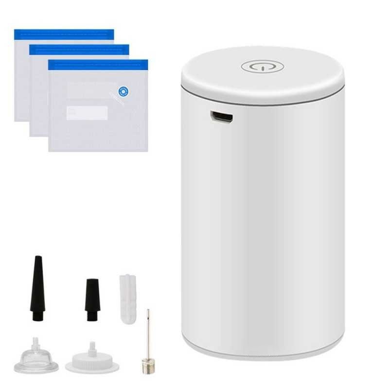 Cea de-a doua functie a aparatului, cea de pompare, se poate utiliza pentru diferite tipuri de articole care necesita alimentarea cu aer. Pachetul contine diferite capete pentru pompare, astfel puteti utiliza produsul pentru: mingi, baloane, colaci pentru inot, jucarii gonflabile etc.Incarcarea aparatului se face prin cablul USB inclus in pachet.