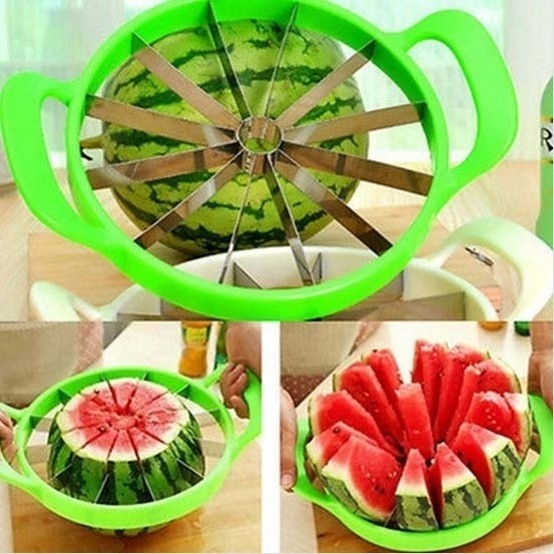 Feliatorul pentru Pepene si Ananas este ajutorul ideal care nu trebuie sa lipseasca din bucataria dvs, acesta taie pepenele sau ananasul in 12 felii perfecte si aspectuoase. Cu ajutorul acestui feliator puteti felia atat pepene rosu, pepene galben, dovleac sau ananas. Acest feliator taie dintr-o singura apasare 12 felii de pepene rosu sau galben, ananas, dovleac. Fructele si Legumele trebuie sa aiba o circumferinta de maxim 20 cm pentru o taiere facila si precisa. Feliatorul pentru pepene sau ananas este format din 12 cutite din otel inoxidabil de inalta calitate cu lame ascutite si manere din plastic dur care va ofera o prindere ferma atunci cand feliati. Poate fi spalat usor sub jet de apa sau in masina de spalat vase.