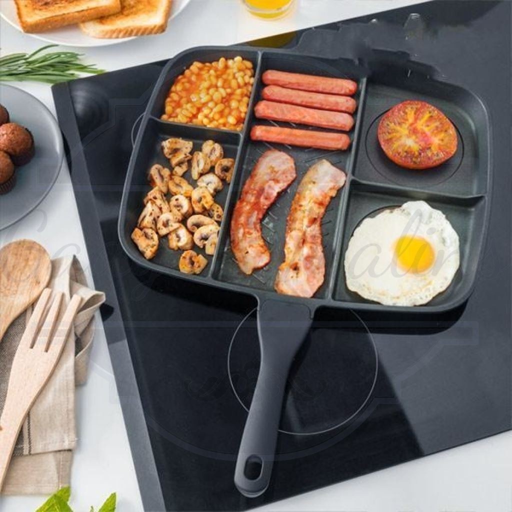 Vă prezentăm revoluționara tigaie antiaderentă 5 în 1. Datorită designului său practic, aceasta vă permite să gătiți până la 5 mese diferite în același timp fără a amesteca aromele sau alimentele.