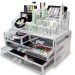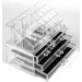 Cutia pentru cosmetice dispune de un design inovativ, este realizata din acrilat transparent rezistent cu 4 sertare si peste 17 suporturi speciale pentru rujuri, creme, oje sau alte accesorii.