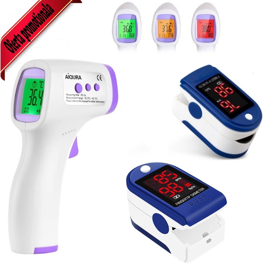 Termometru digital non contact cu infrarosu + Pulsoximetru pentru masurarea saturatiei de oxigen din sange si masurarea pulsului
