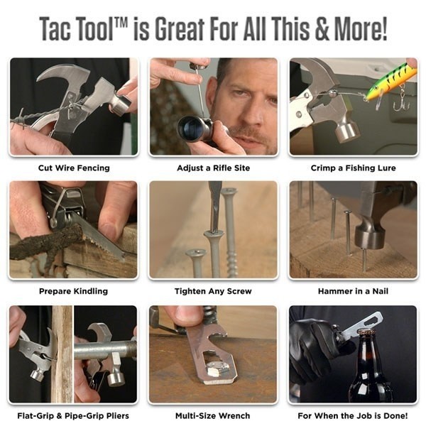 Indiferent dacă faceți sau rupeți, crafting sau gătit, de la DIY de zi cu zi la cele mai extreme situații de supraviețuire, Tac Tool poate fi de un real folos.18 instrumente intr-unul singur multifuncțional usor si rezistent.
