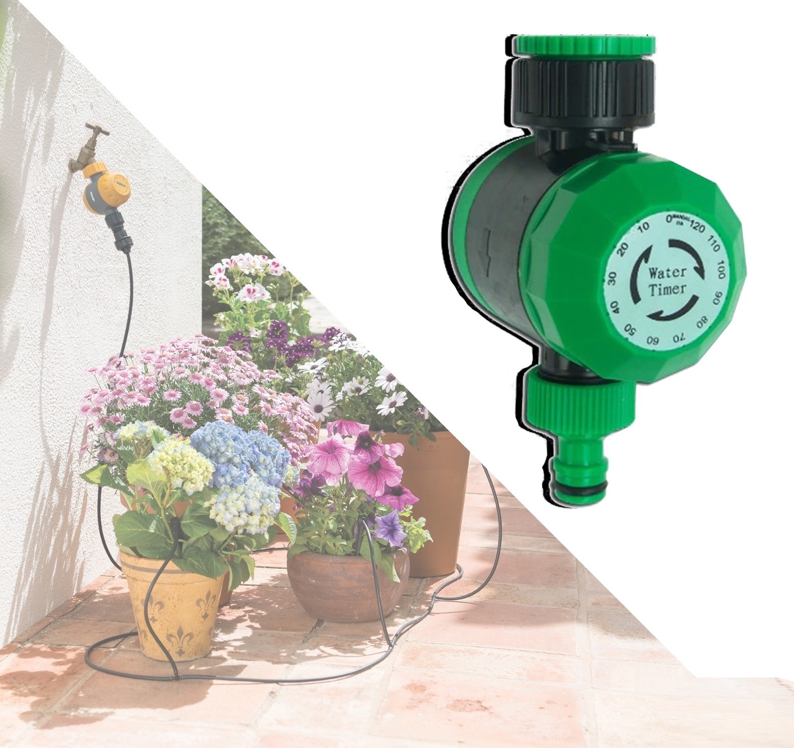 - Este un dispozitiv simplu de tip timer cu ajutorul caruia puteti selecta o durata de udare de pana la 120 de minute si se va opri automat