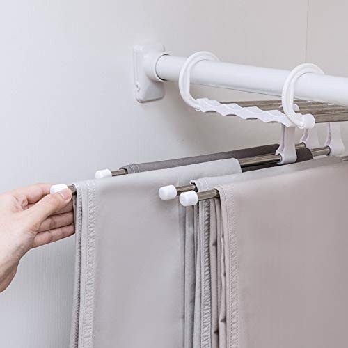 Un cuier practic pentru 5 perechi de pantaloni care pot fi usor atasati de orice dulap. Umeras pentru pantaloni (pana la 5 perechi!), Care pot atarna pe carlige sau doua intr-o singura - ocupa foarte putin spatiu valoros - latimea carlige de suspendare, agatat pe ambele este doar 15 cm.