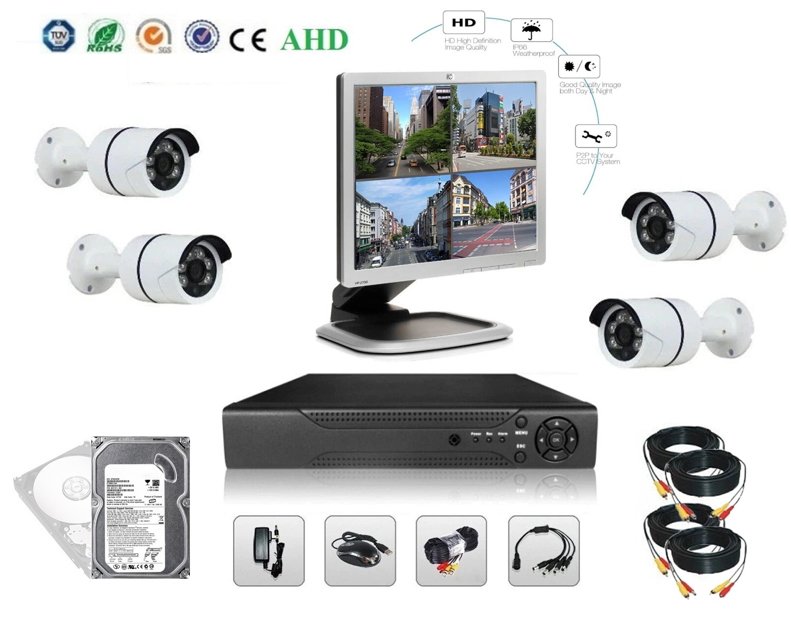 Sistem complet, supraveghere monitorizare video CCTV FULL HD DVR 4 camere interior/exterior cu HDD 500Gb-1Tb si Monitor