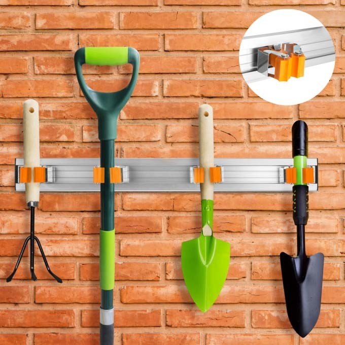 Pe suport pot fi păstrate ustensilele de curățenie dar și alte scule necesare în casă.