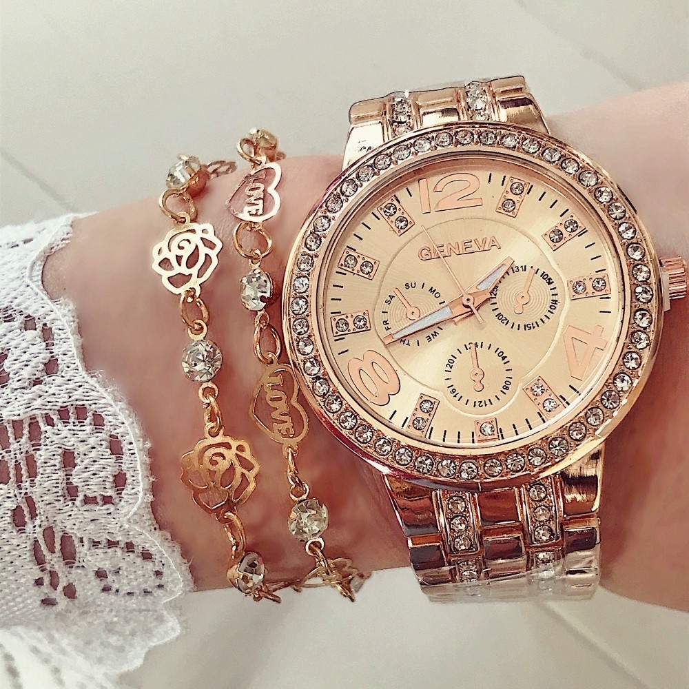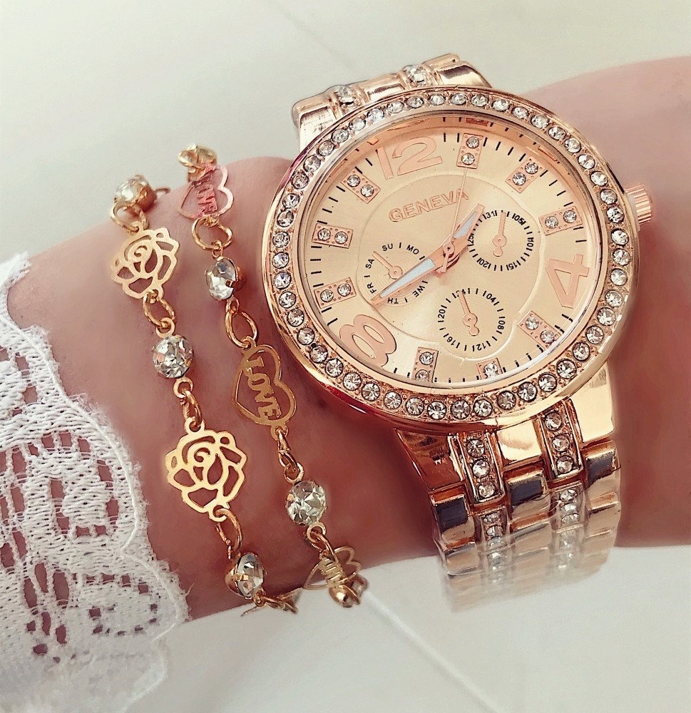 Ceasul de dama metalic Geneva Rose este un accesoriu potrivit pentru zile si tinute casual, dar si pentru petreceri, evenimente etc.