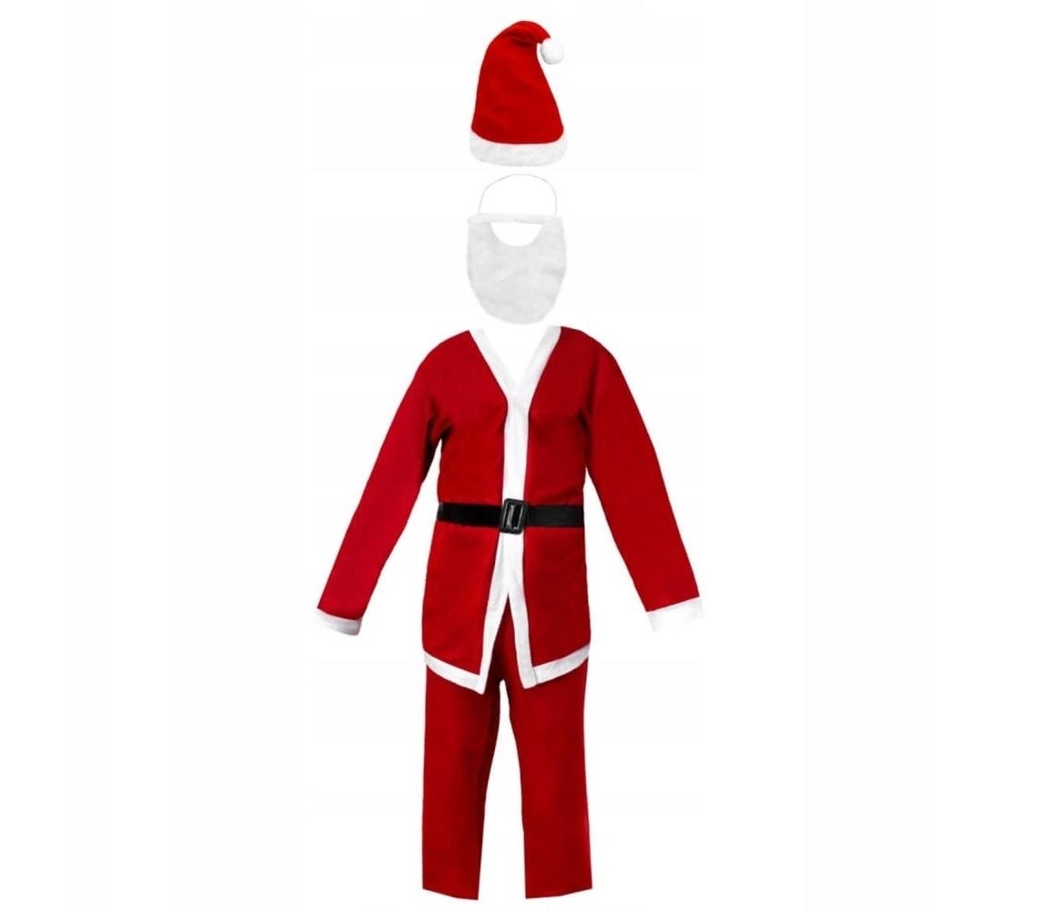 Acest costum de Craciun universal este ideal atat pentru baieti cat si pentru fetite cu varsta intre 7-9 ani pentru a se deghiza in Mos Craciun cu ocazia serbarilor de Craciun. De asemenea, poate fi imbracamintea perfecta pentru seara de Craciun pentru copii. Fabricat din poliester de inalta calitate, acest costum de Mos Craciun este confortabil si calduros cand il purtati. Este foarte usor si rapid de imbracat, fiind o marime universala. Costumul este format din 5 piese: haina, pantaloni, curea, barba si caciula. Cureaua neagra va permite sa alegeti lungimea potrivita pentru Mos Craciun. Folosirea acesteia va ajuta la mentinerea jachetei in pozitia corecta asigurand un design mai realist al costumului.