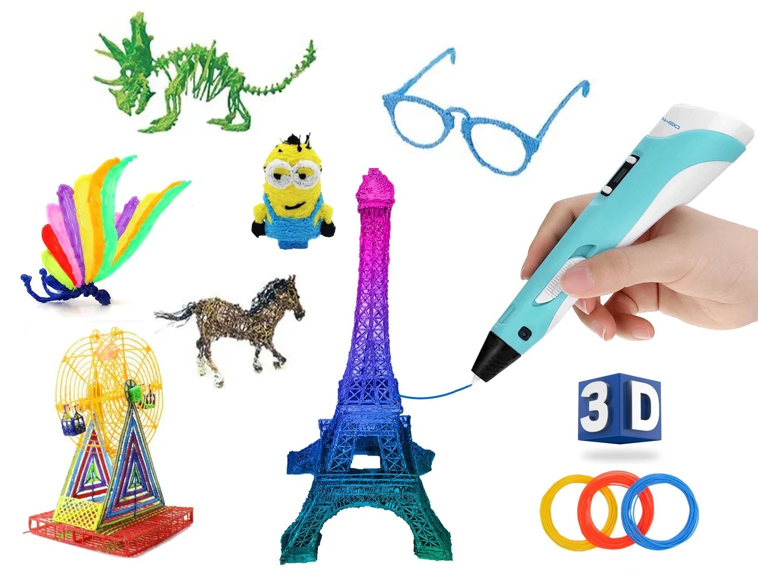 Creionul 3D este un aparat inovator cu design ergonomic pentru a fi folosit cu usurinta in timpul desenarii, utilizand tehnologia imprimantelor 3D, integrata intr-ul stilou (creion). In pachet sunt incluse 4 filamente cu culori diferite, iar acestea pot fi schimbate cu usurinta apasand doar un buton. Cu ajutorul creionului 3D, puteti desena in spatiu, realizand astfel obiecte 3D. Modelul prezentat are afisaj electronic care indica temperatura. Lasati aparatul sa ajunga la temperatura optima si incepeti sa desenati in spatiu 3D.