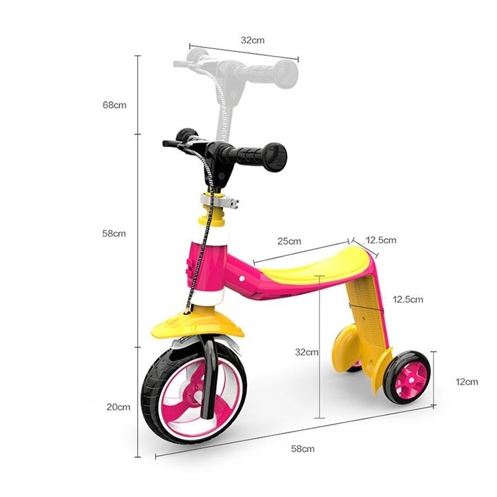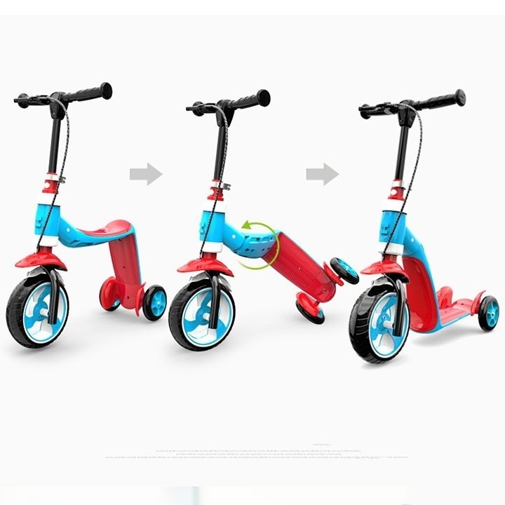 Transforma cu usurinta trotineta in bicicleta fara pedale doar cu o apasare de buton. Design inovator care va permite sa apasati pur si simplu un buton, sa rotiti cadrul cu 180 °, sa faceti clic in pozitie si copilul dvs. este gata de plecare.Specificatii: