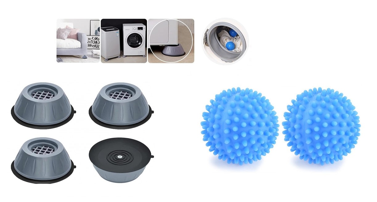 Pachet promo Pachet Set 2 bile anti-sifonare, uscarea rapida a rufelor pentru masina de spalat si Set 4 suporti amortizare, antizgomot/antivibratii pentru masina de spalat