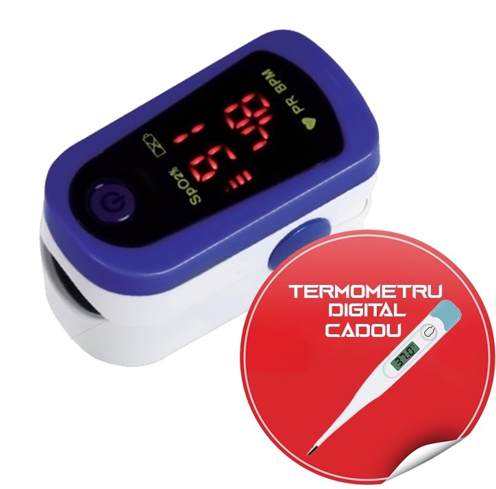 Pulsoximetru digital – măsurare puls și saturația de oxigen + Termometru digital CADOU