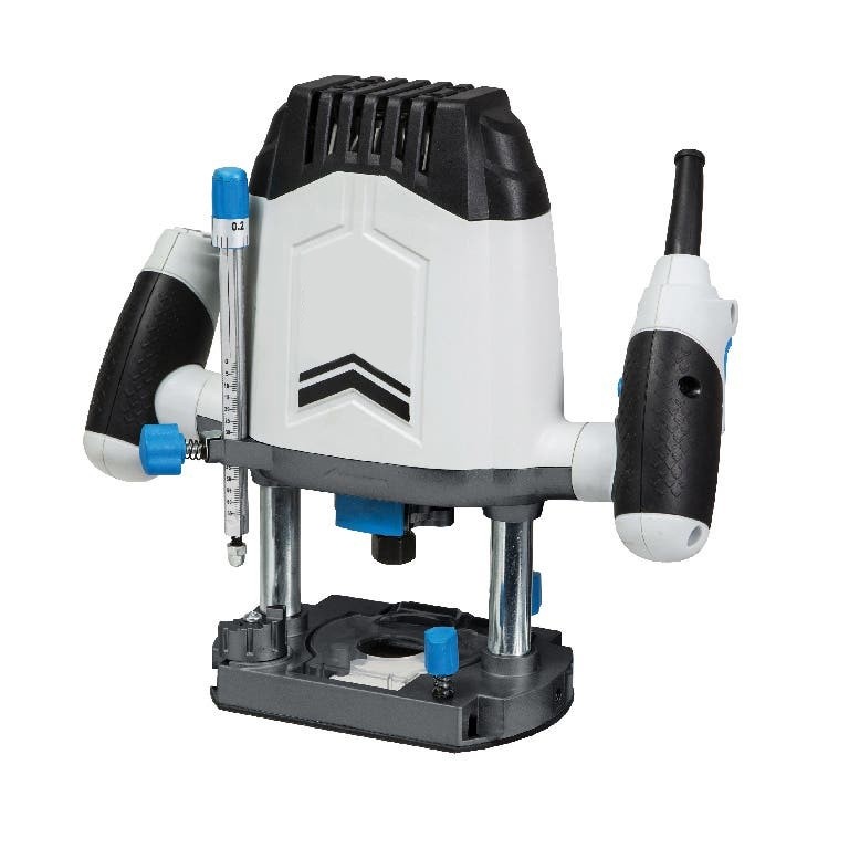 - Freza verticală Mac Allister MSR1200 este realizată cu o bază din aluminiu / magneziu și comutator de blocare.