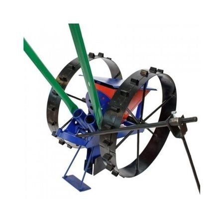 Semanatoarea manuala cu disc 12 gauri de diferite dimensiuni poate fi folosita atat pentru semanat in linie, cat si semanat in cuiburi.