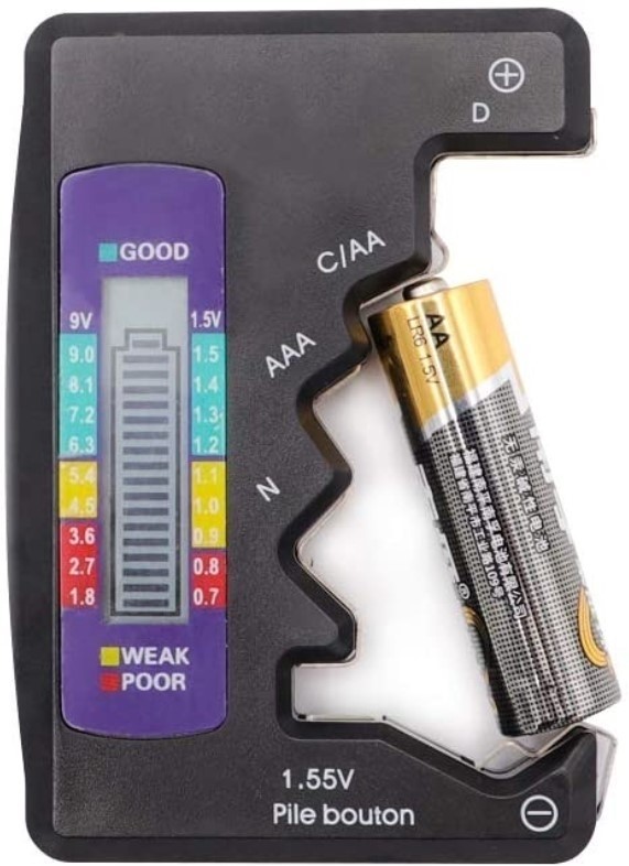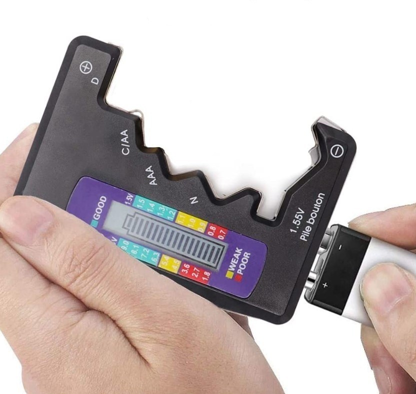 - Plasati bateria intre cele doua puncte ale testerului, afisajul usor de citit va va spune instantaneu cat de incarcata este, astfel puteti decide daca o mai folositi